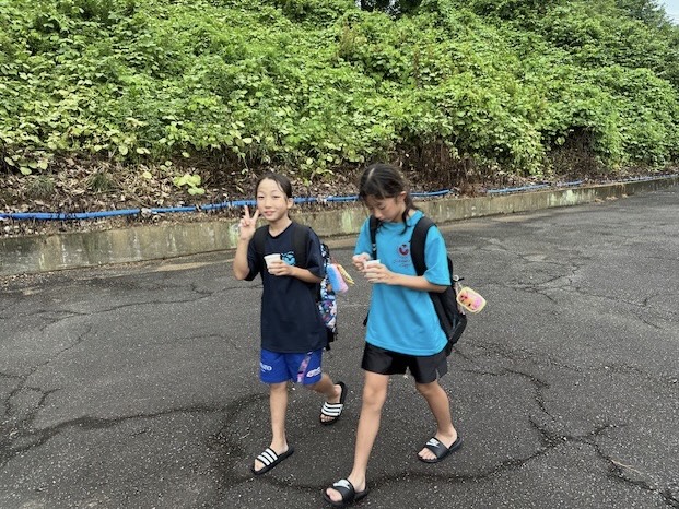 午後練終わりにかき氷を食べながらバスへ